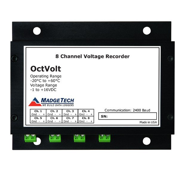 The OctVolt is an eight channel, battery powered, stand alone DC voltage data logger. This is an all-in-one compact, portable, easy to use device that will measure and record data for up to 16,383 measurements per channel.