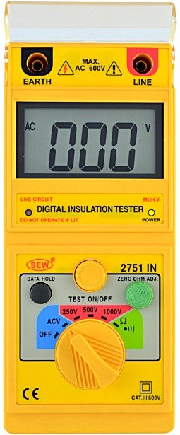 ● Three insulation test voltages(DC V) : 250V, 500V, 1000V.