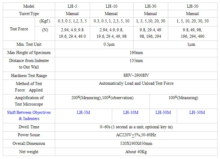 Model THV-5M /10M/30M/50M Micro Vickers Hardness Tester (with motorized turret) is with the function to shift between the indenter and objectives mutually during test process.