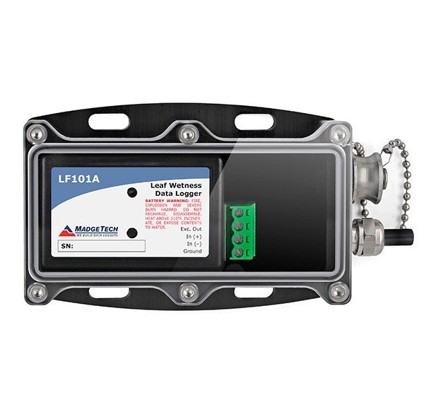 The LF101A is a complete data logging system that accurately measures and records leaf wetness. Not only does it record the presence of water but also logs the amount of water on the sensor. The sensor responds to environments the same way a real leaf does and can also detect when ice is present. This low cost system comes complete with a data logger, weatherproof enclosure and leaf wetness sensor.