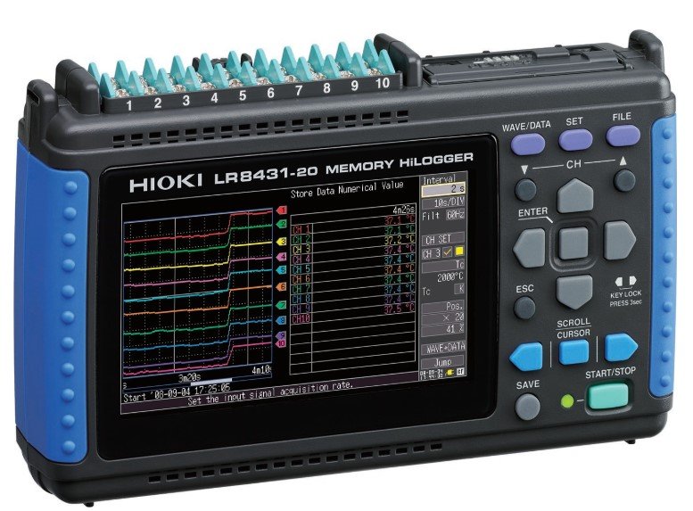 Hioki Memory HiLoggers are high-speed data loggers for recording multiple chanels of voltage, temperature, pulse or rotation signals, providing complete isolation between channels and strong noise resistance . The LR8431 logs data at 10ms speeds across 10 channels simultaneously, and features a bright color LCD for crystal clear waveform displays.