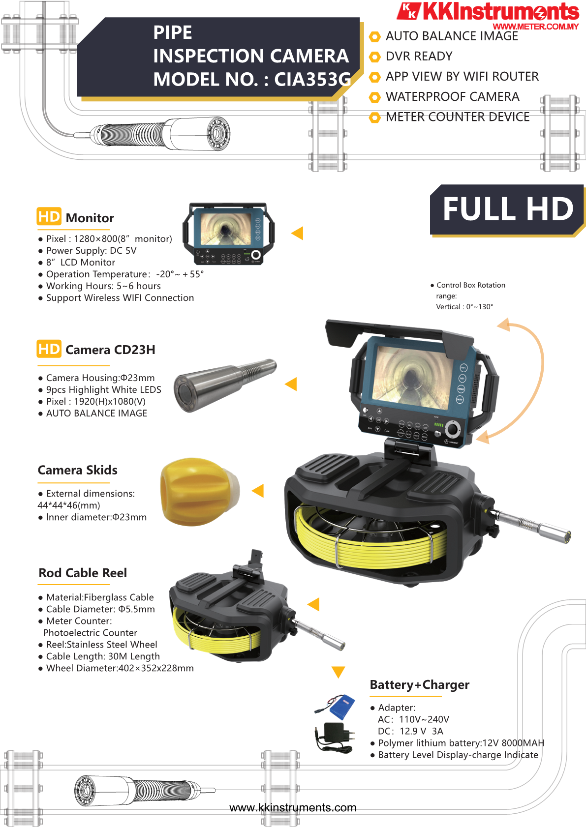 CIA353G- ALL NEW FULL HD 40M PIPE INSPECTION CAMERA VIDEOSCOPE (40M/23MM/RECORDING/SNAPSHOT)-2026