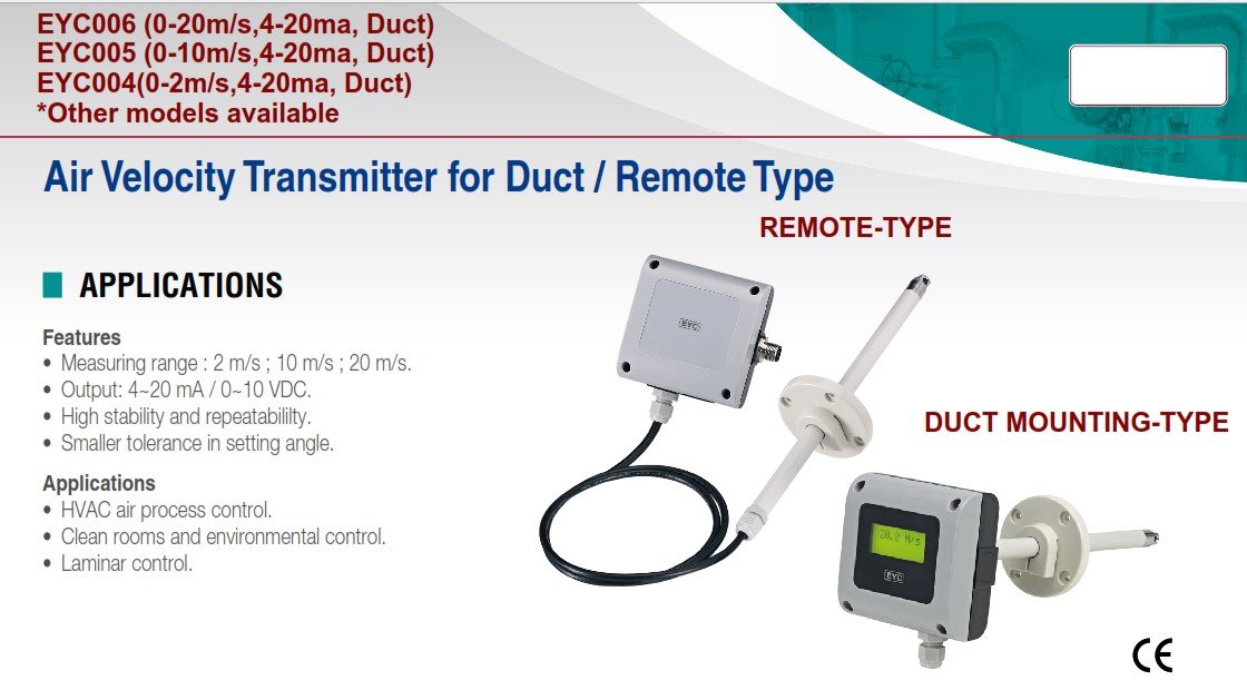Featured item EYC005-0-10M/S DUCT AIR VELOCITY TRANSMITTER W LCD DISPLAY