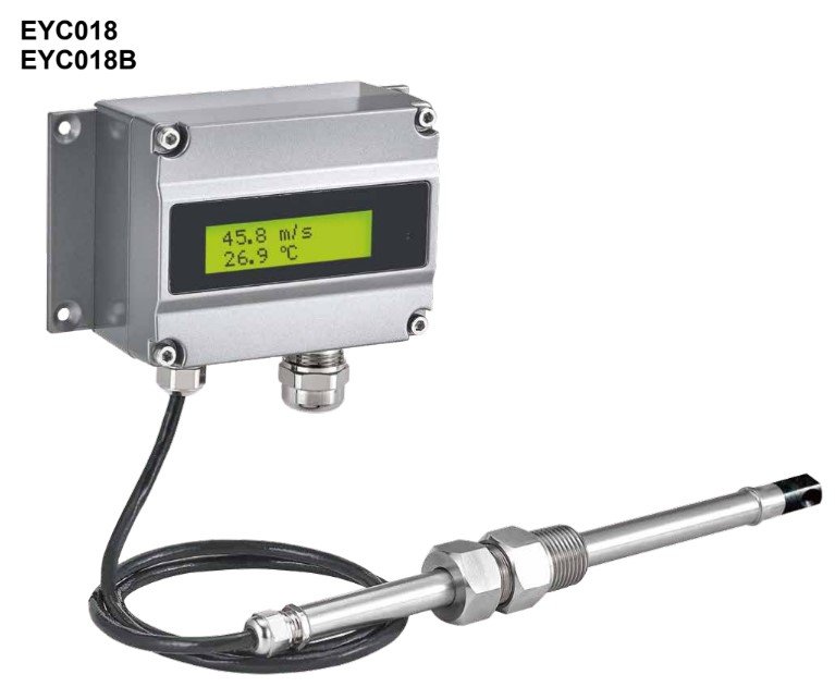 You are here: Home Products Airflow meters EYC018B T:-20C/+100C AIR VELOCITY: 0/60M/S INDUSTRIAL AIRFLOW TRANSMITTER W DISP (24DCV) Industrial High Accuracy Thermal Air Velocity Transmitter
