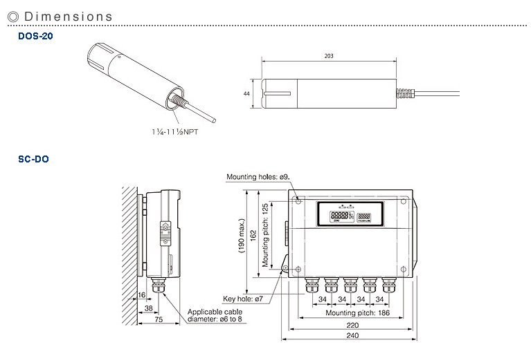 OPT107+OPT108-Optical Dissolved Oxygen Sensor and DO Transmitter (DOS-20+SC-DO(E)) - Made in Japan