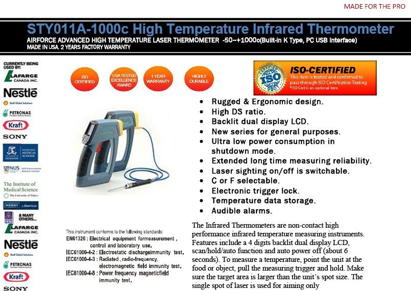 STY011A-AIRFORCE STY011A 1000c High Temperature Infrared Thermometer (with K temp inpu,PC usb)