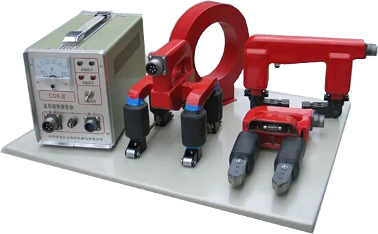 crossed yoke probes or rotating magnetic field probes, compositely magnetic detecting in one time. The walking wheels and work light can effectively speed up the defect detecting. Probe distance:110;elevating power:AC≥8. Equipped with a rotating magnetic field detector. Adopting alternating current phase shifting technology, the two crossed magnet yokes will produce a synthesis of a rotating magnetic field changed by time, which can all compositely magnetize the workpiece in one time. This probe is characterized by fast speed and high quality of detection.