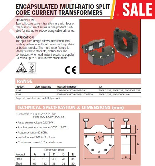 Multi-Ratio Split-core Current Transformers-From UK