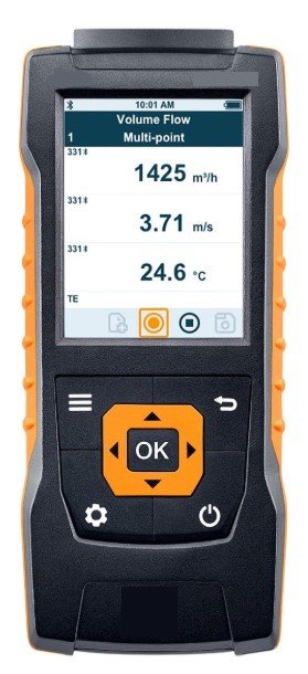 - Intuitive: Clearly structured measurement menus for volume flow, K factor, degree of turbulence, heating/cooling output, mold detection, and long-term measurement, such as CO2